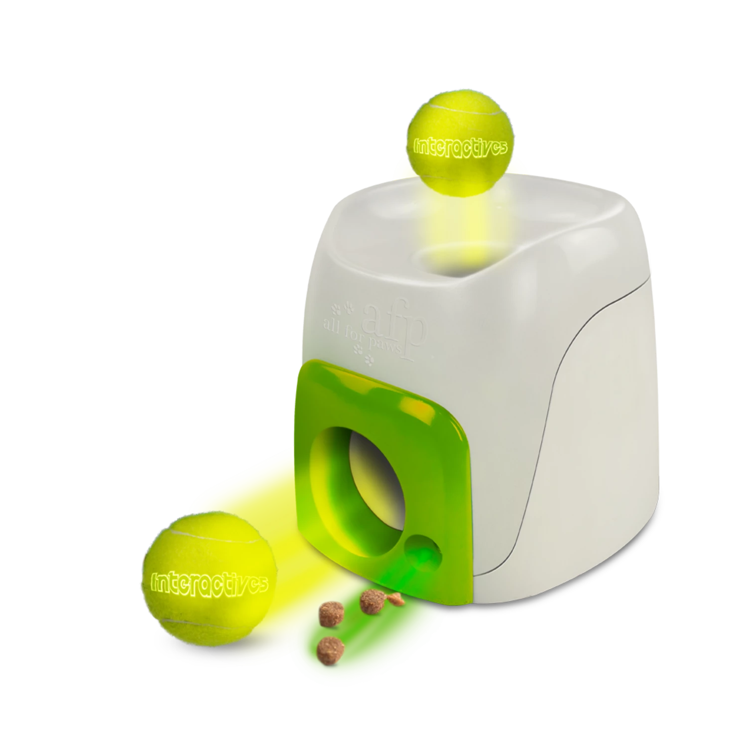 Voorkom eenzaamheid en verveling gebruik de Fetch’N Treat want deze staat garant voor uren speelplezier! Door de tennisbal (wordt erbij geleverd) in de