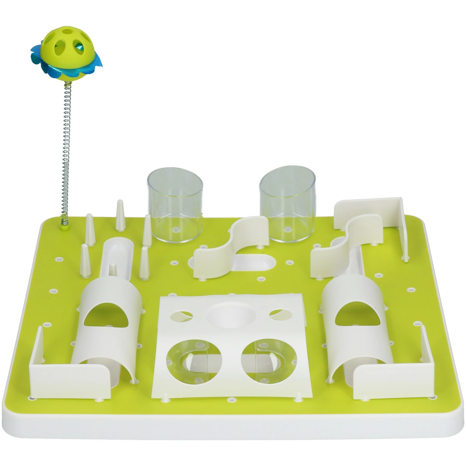 Het snackdoolhof kan op vele manieren worden ingedeeld. Door het toevoegen van onderdelen vergroot u de moeilijkheidsgraad voor uw kat.