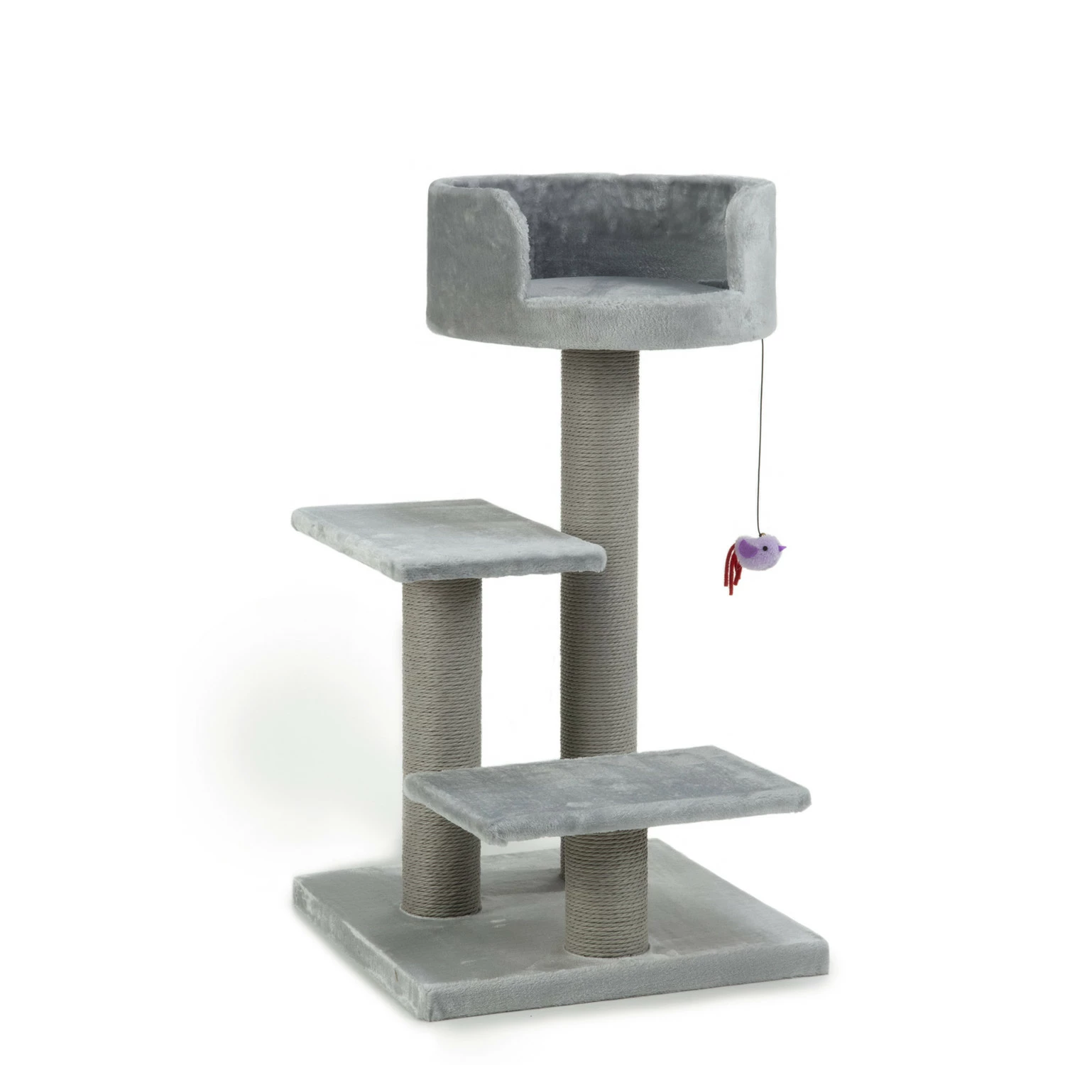 De Beeztees Figo krabpaal is een mooi krabmeubel met meerdere krab gedeelten en ligplekken. Zo zijn er drie krabpalen die afgewerkt zijn met gekleurd papier. Dit papier is net zo sterk als sisal en het vormt een mooi geheel met de gekleurde plateaus. Het krab gedeelte is nagenoeg kleurvast. Daarnaast heeft dit krabmeubel maar liefst drie liggedeelte. Het hoogste liggedeelte is afgewerkt met een opstaande rand waar jouw kat heerlijk tegenaan kan liggen. Om de Beeztees Figo krabpaal af te maken is er ook nog een speelvogeltje aan een elastiek bevestigd. Dit geeft jouw kat nog meer speelplezier.