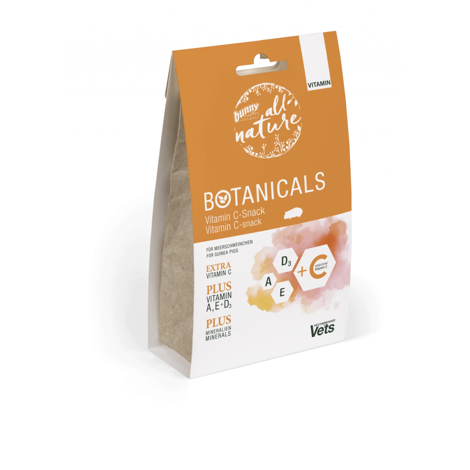 De Vitamine C Snack van Bunny Nature Botanicals is een belangrijk bestanddeel van een evenwichtig voerderconcept. De snack biedt de garantie dat de cavia’s alle noodzakelijke vitaminen en sporenelementen krijgen en in het bijzonder vitamine C. De snack compenseert vitaminetekorten, want naargelang het weer bijvoorbeeld zorgt moeder natuur voor verschillende vitaminegehaltes en voedingswaarden in alle plantaardige bestanddelen.