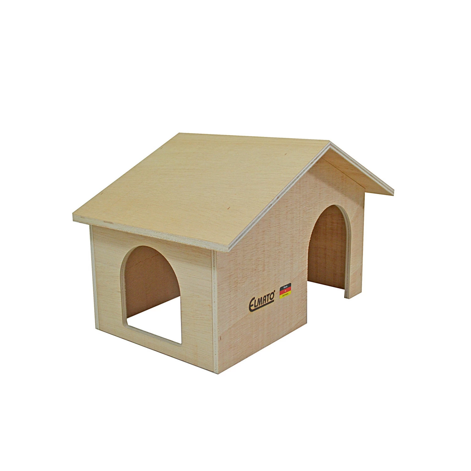 Dit klassieke houten huis is geschikt voor cavia’s. Het huis heeft twee verschillende ingangen: 1 aan de voorkant en 1 aan de zijkant, de opening aan de zijkant heeft een drempel. Het huis is gemaakt van onbehandeld hout en het dak heeft een kleine overstek. Het huis heeft een open onderkant. Door de dubbele in-/uitgang ideaal als snelle vluchtroute. Het puntdak geeft het huis de klassieke uitstraling.