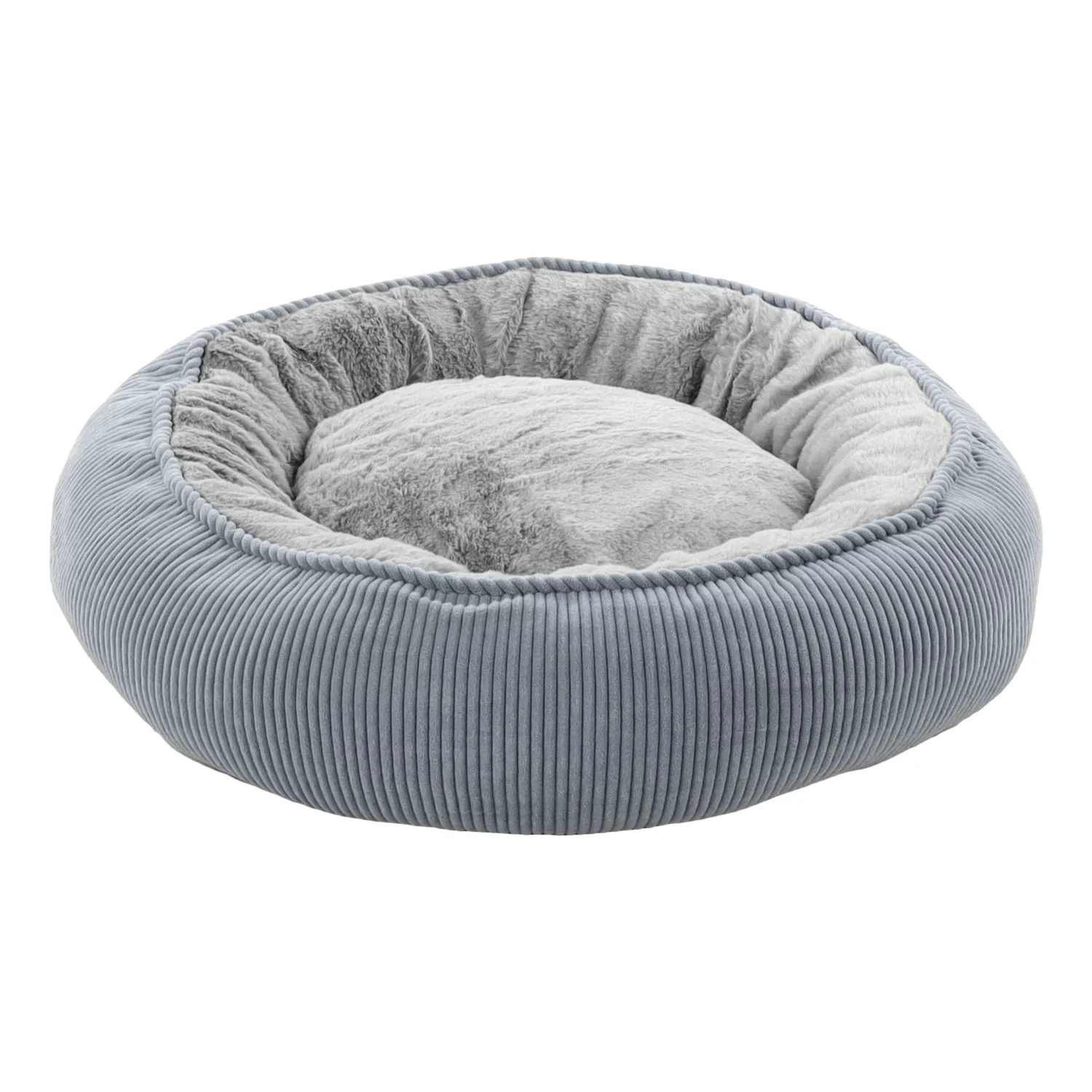 De Flamingo Mand Rond Colette is een mand voor katten en kleine honden. De buitenkant is voorzien van stevig, maar zacht ribfluweel. De binnenkant is gemaakt van zacht pluche. De rand is goed gevuld zodat jouw huisdier het hoofd op kan rusten. Het kussen is aan de ene kant voorzien van ribfluweel en de andere kant van het zachte pluche in dezelfde kleur. Je kan zelf kiezen welke stof je boven hebt liggen, want het kussen zit los van de mand. De hoes van het kussen kan eenvoudig er vanaf gehaald worden door middel van een rits. De onderkant is voorzien van antislip zodat de mand stevig op zijn plek blijft liggen.