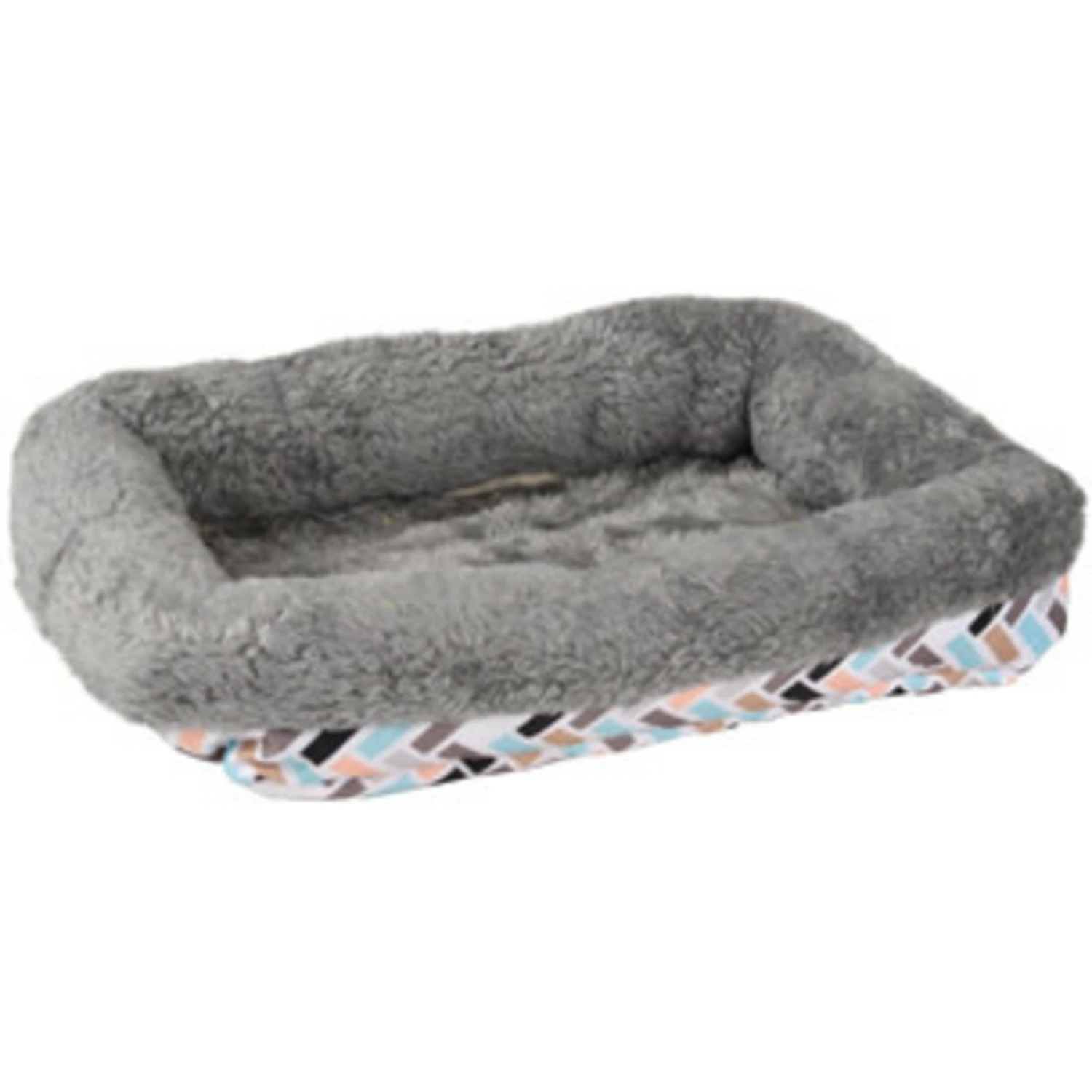 Jouw dwergkonijn, cavia, chinchilla, degoe of ratje kan heerlijk luieren en dromen wat er zo hopelijk op het menu staat aan lekkere dingen in de Mand Clavio Rechthoekig. De mand is rechthoekig van vorm. Door de vorm is het mandje ideaal te gebruiken om een bedje of hutje op te vullen zodat jouw dier veilig en warm kan liggen. De binnenkant is voorzien van zacht pluche en de buitenkant is een gladde stof met een kleurrijk patroon. De mand is te wassen met de hand.