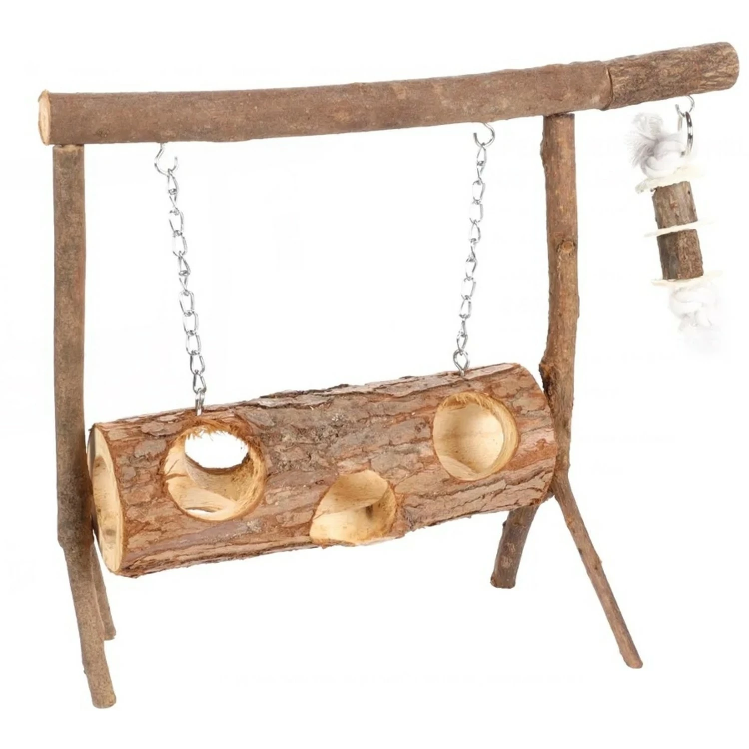 Deze natuurhouten schommel is geschikt voor dwerghamsters en muizen. Dit product wordt gedemonteerd geleverd in een klein bouwpakketje wat vrij eenvoudig in elkaar te zetten is.