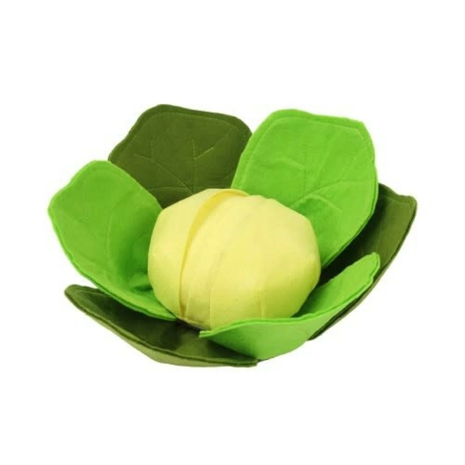Dit Hide and Seek snuffel speeltje is gemaakt in de vorm van een kool. Gemaakt van vilt is het zacht, maar toch stevig. Tussen de 3 donkergroene en 3 lichtgroene bladeren kun je lekkers stoppen. In het gele gedeelte van de kool kun je 2 lagen stof naar opzij openen. Hier kun je ook lekkers in verstoppen en het zo moeilijker maken.