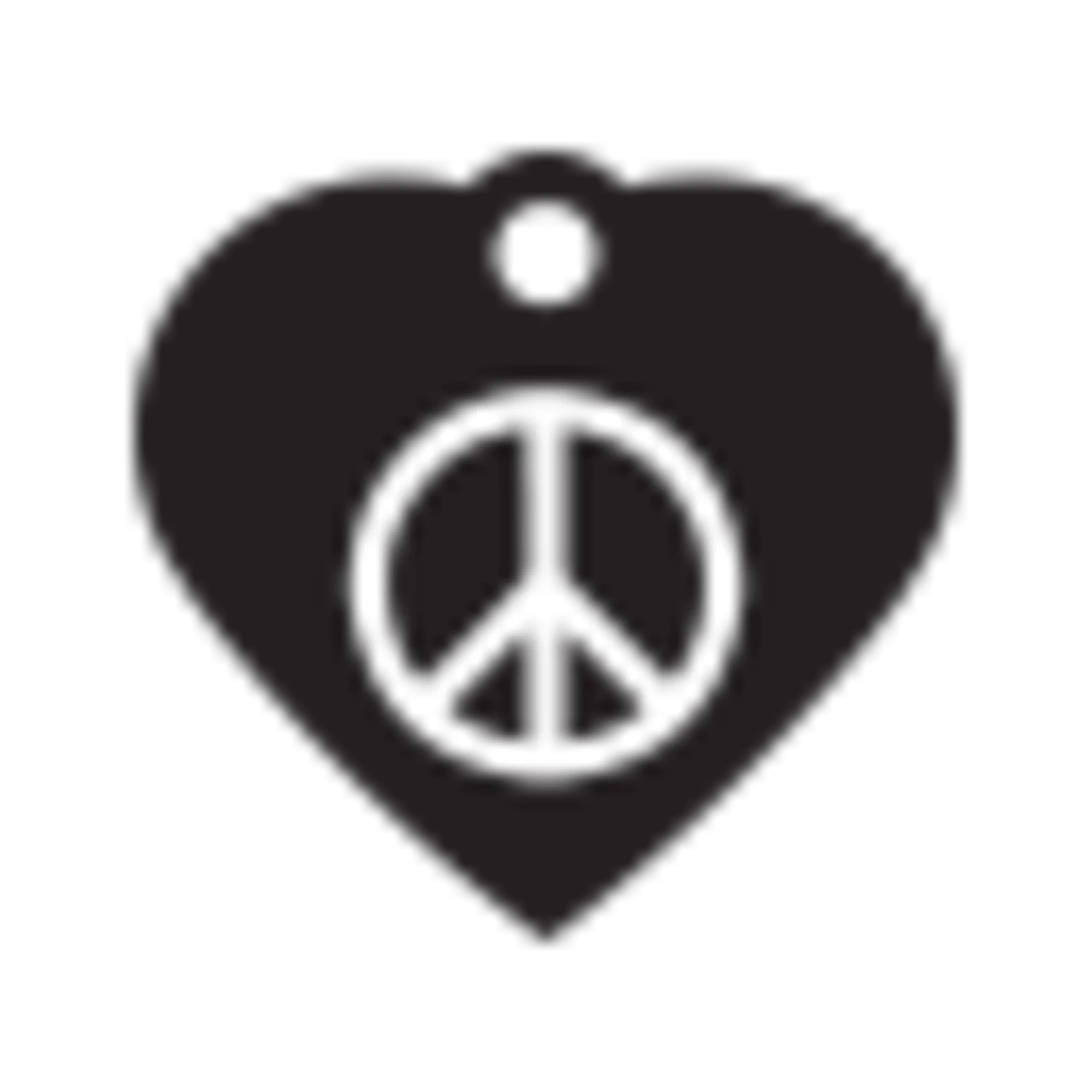 Kleur: Zwarte achtergrond met een wit peace teken erop