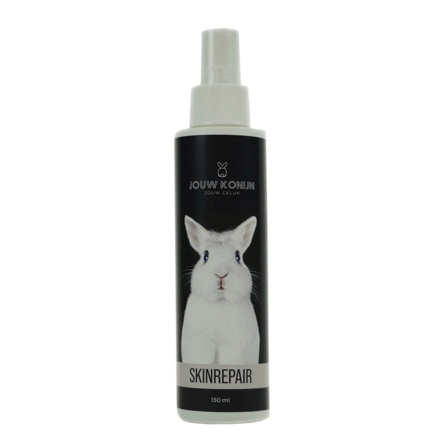 Skinrepair is geschikt voor de eerste hulp bij jouw konijn. Skinrepair kan ingezet worden voor een milde en grondige reiniging van de beschadigde huid door kleine wondjes, schaafplekken en geïrriteerde huid. Skinrepair lost korstjes, eiwitten en vetten op en ondersteunt het herstellend vermogen van de huid. De omliggende gezonden huid wordt door de spray verzorgd en gehydrateerd.