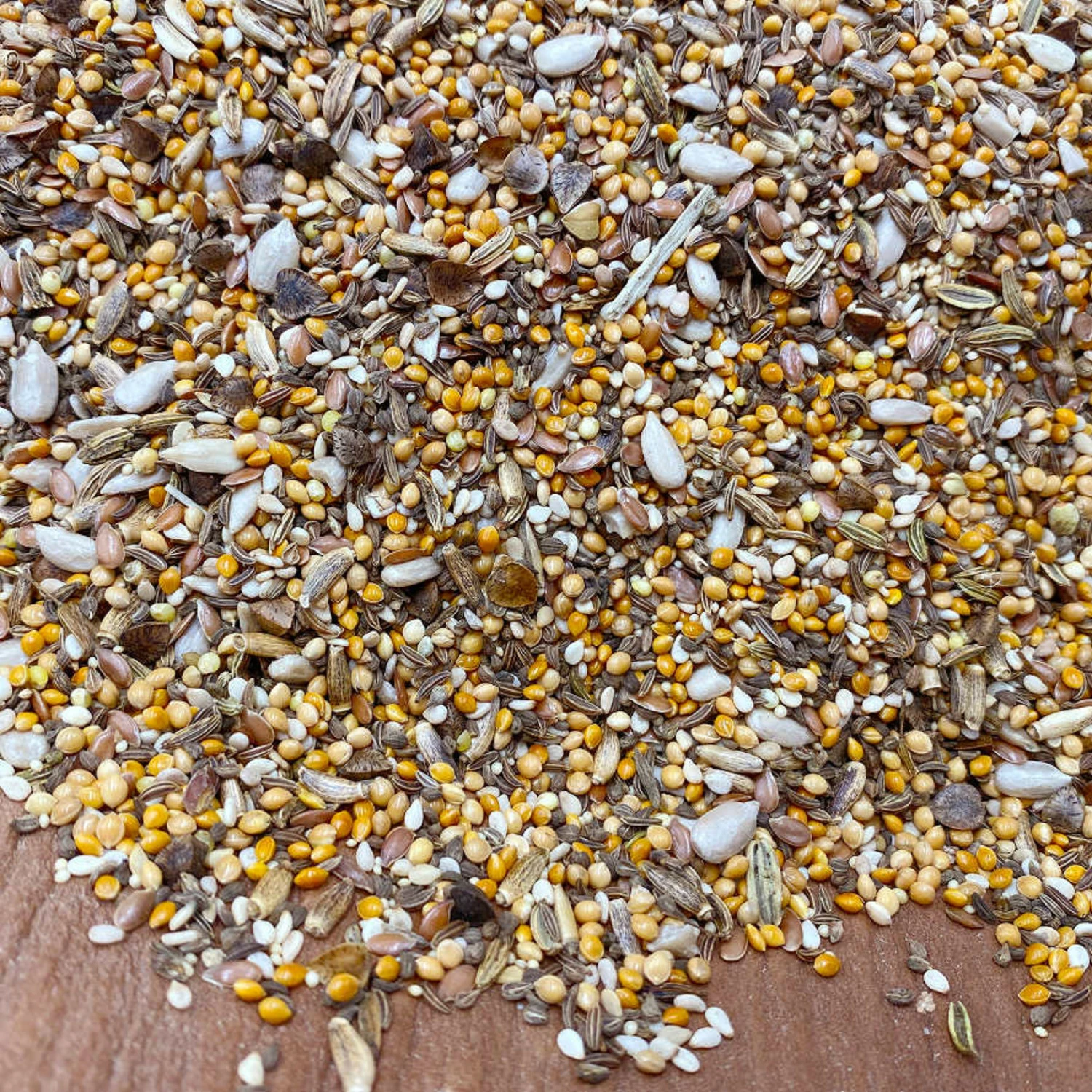 Samenstelling: Plata millet, rode millet, mariadistelzaad, anijszaad, venkelzaad, karwijzaad, sesamzaad, lijnzaad, zonnebloemzaad, boekweit, amarant.