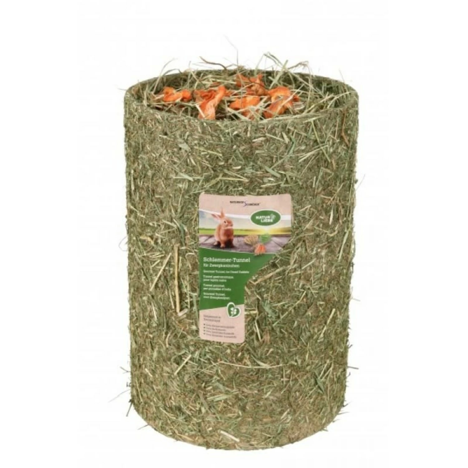 Deze hooitunnel is geweldig voor alle knaagdieren! De hooitunnel is gevuld met heerlijk ruikend hooi en zoete wortelschijfjes. Hierdoor is het een perfect en avontuurlijk tussendoortje maar ook geschikt om in het verblijf neer te leggen. De hooitunnel is vrij van granen en bijproducten van granen. Het bevat geen toegevoegde suikers, geen kleurstoffen en conserveringsmiddelen. Eveneens ideaal voor grote knaagdieren en konijnen om mee te spelen en aan te knagen.