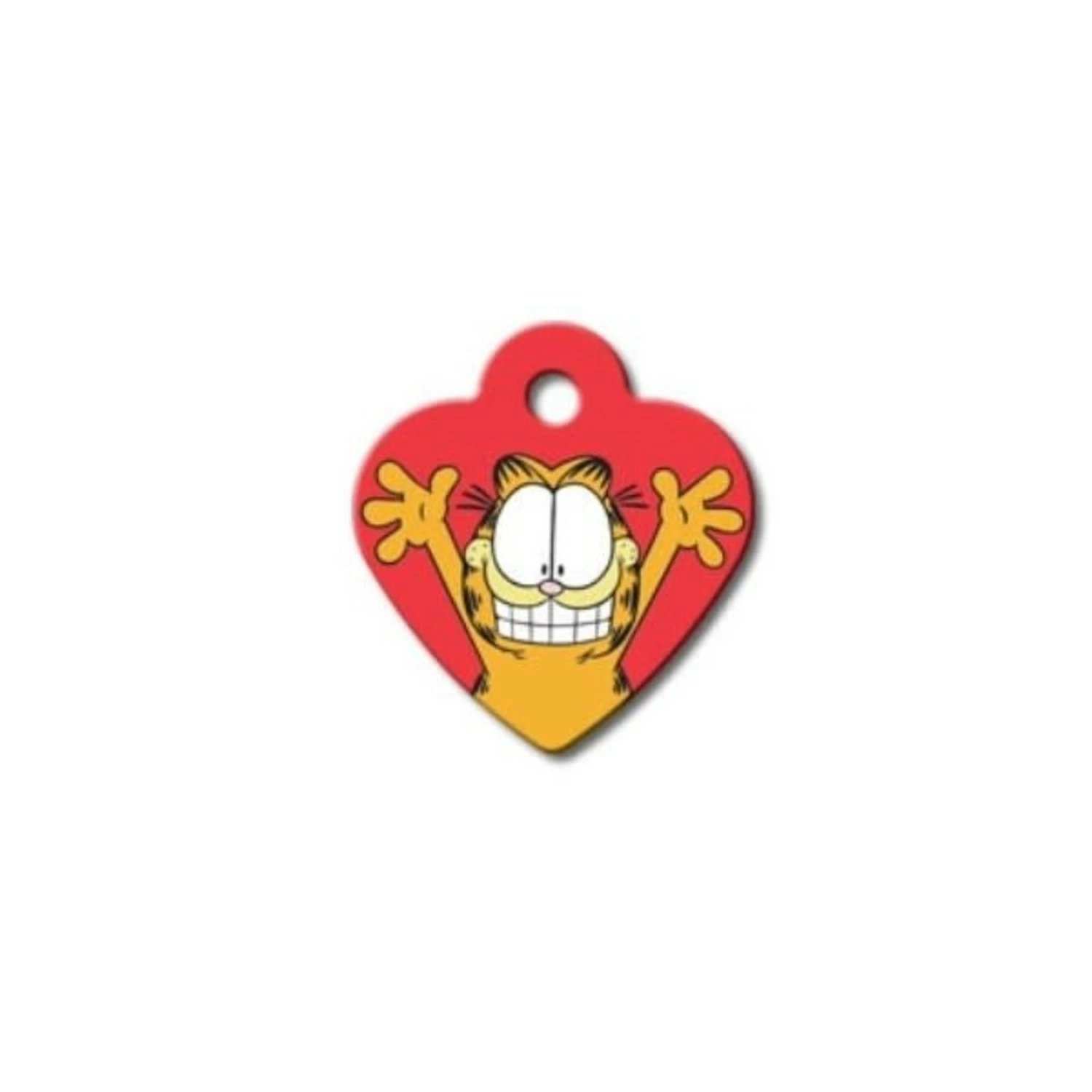 Hondenpenning in hartvorm met een plaatje van Garfield. Op de penning kan de naam van uw huisdier of uw telefoonnummer gezet worden.