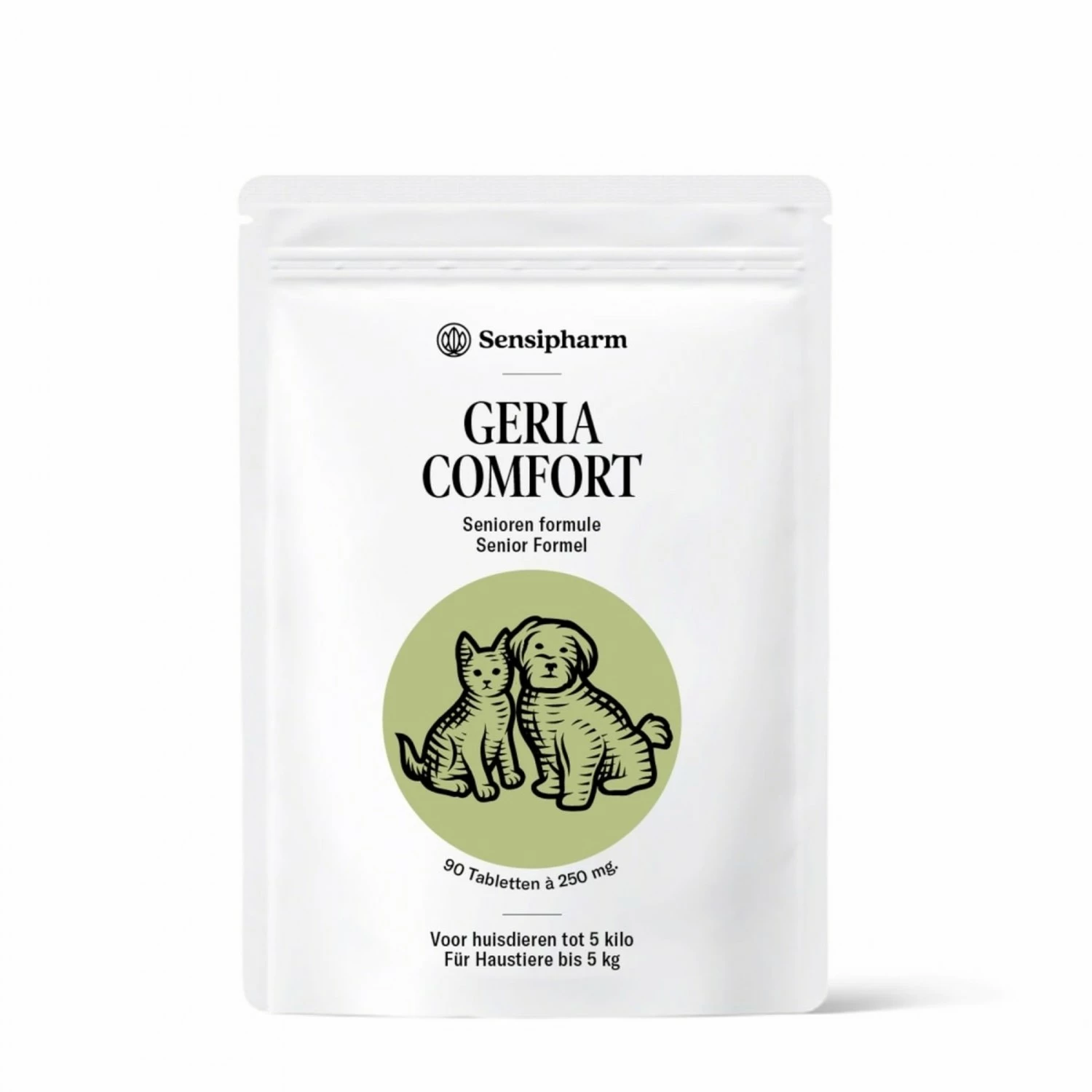Geria Comfort mag aan alle huisdieren gegeven worden, van alle leeftijden, dus ook aan puppy’s en kittens. Speciaal voor huisdieren tot circa 5 kilo zijn er 250 mg tabletjes. Aanbevolen wordt om tot 5 kilo lichaamsgewicht 2 maal daags 1 tablet a 250 mg. oraal te geven. Bij het gewenste resultaat na bijv. 1 Ã 2 weken kan de dosering verlaagd worden. De tabletjes hebben geen aparte smaak of geur, en kunnen zo uit de hand gegeven worden, of ‘verstopt’ worden in iets lekkers, of door het voer. Voor huisdieren vanaf 5 kilo lichaamsgewicht zijn er grotere 1000 mg tabletjes verkrijgbaar.