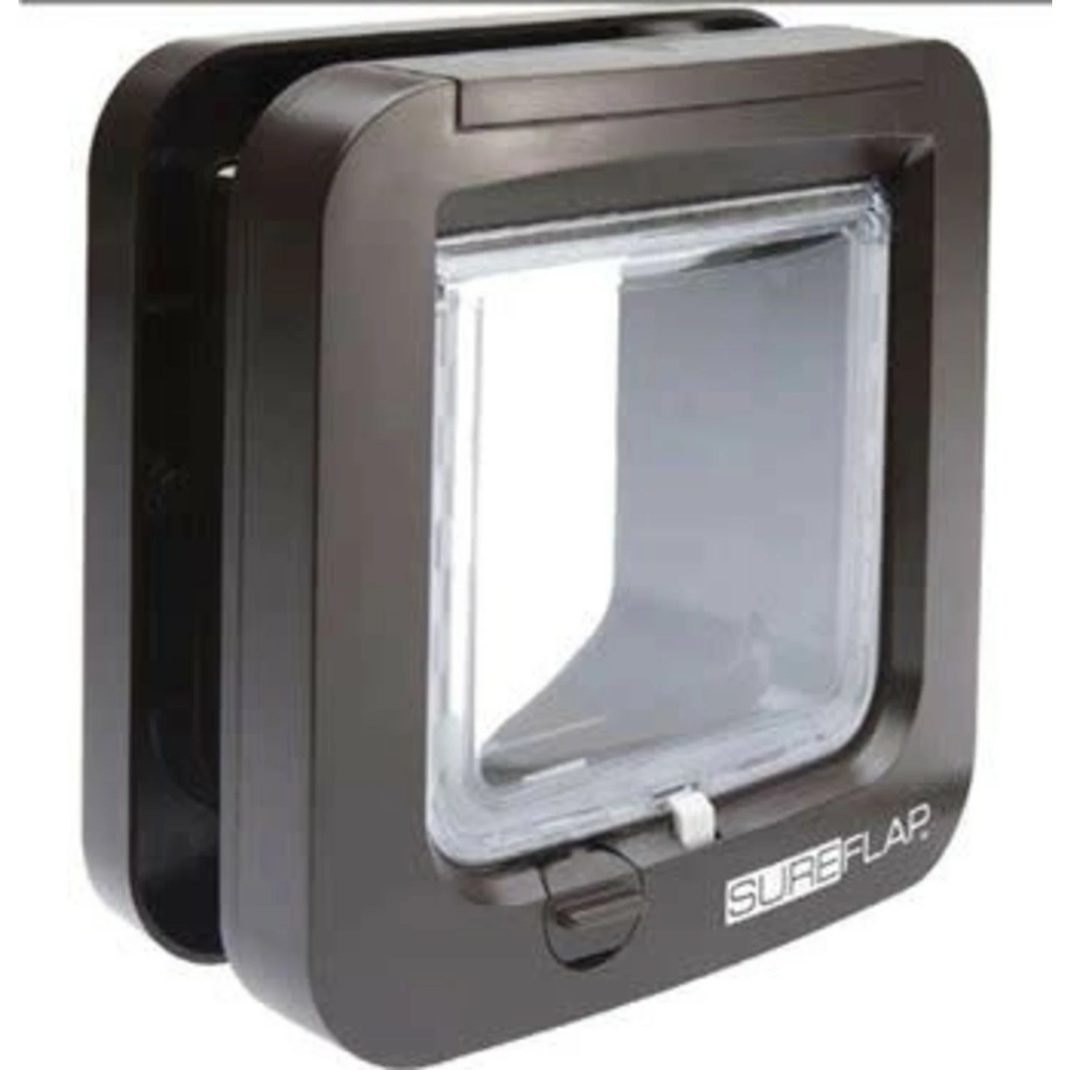 Het SureFlap microchip kattenluik identificeert katten aan de hand van hun eigen unieke microchip. Zo wordt er voorkomen dat er andere katten in uw huis kunnen komen. In het SureFlap luik kunnen 32 unieke codes opgeslagen worden. De codes kunnen met 1 druk op de knop ingeprogrammeerd worden. Er is geen halsband of penning nodig om binnen te kunnen komen. De kat loopt dus geen risico om de halsband kwijt te raken of te blijven hangen.