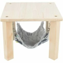 Materiaal: onbehandeld hout en hangmat van pluche/polyester