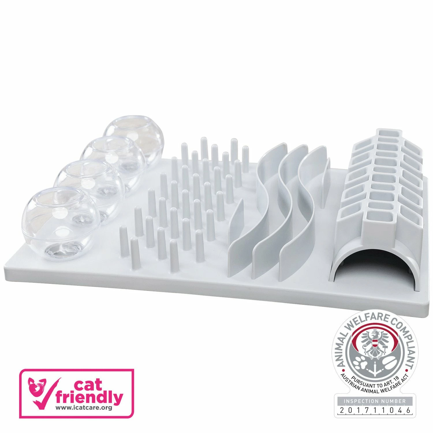 Het Fun Board is een kattenpuzzel speciaal geschikt voor alle niveaus. Met verschillende kommetjes, pennetjes en een golf zijn er diverse technieken nodig om bij alle lekkernijen te komen.