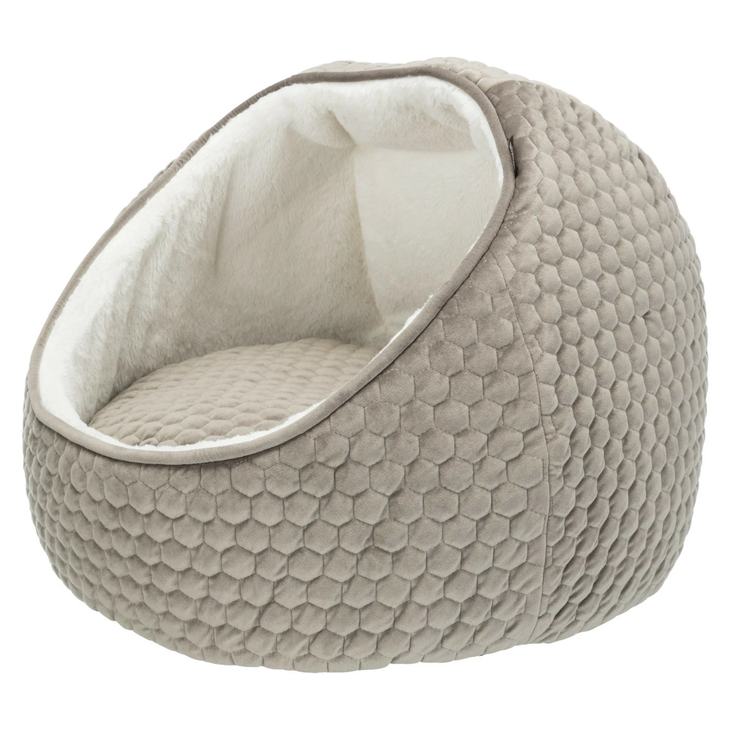 De Trixie Kattenmand Iglo Livia is een knusse kattenmand in velourslook met pluche binnenkant en wendbaar kussen. In deze mand voelt jouw kat zich heerlijk veilig! Door de ronde vorm is jouw kat aan bijna alle kanten beschermd en kan hij comfortabel tegen de hoge randen aanliggen. De buitenkant van het mandje is uitgevoerd in een leuke velours look en het kattenbed heeft een binnenkant met doorgestikte pluche bekleding. Door de polyestervlies en schuimrubber vulling ligt jouw kat stevig en de slipvaste onderkant zorgt dat jouw dier gemakkelijk in en uit de mand kan stappen. Het leuke kussen is bovendien wendbaar en heeft twee verschillende designs, zodat jij zelf de uitstraling van het mandje kan kiezen!