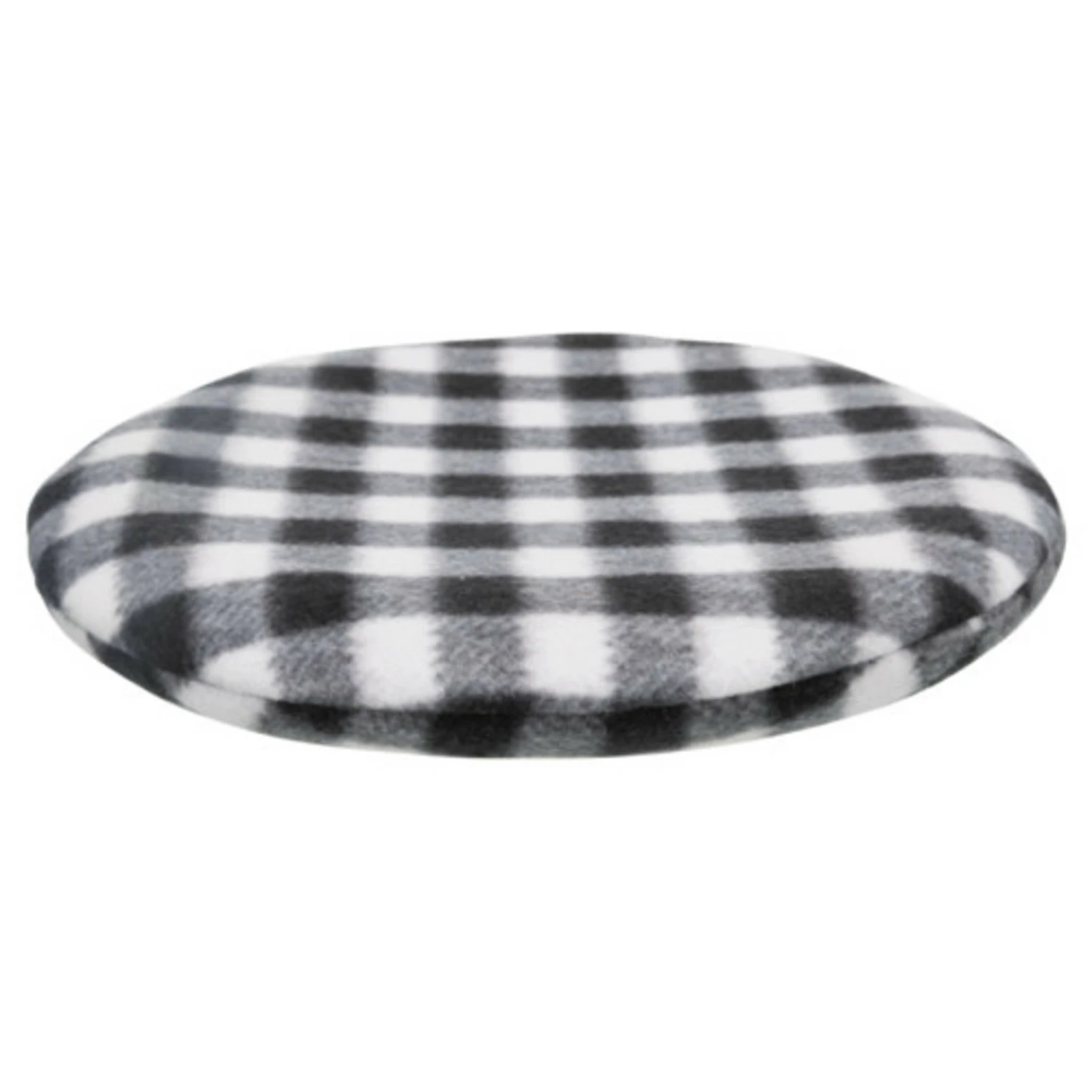 Om de warmteschijf zit een zachte zwart/wit geruite hoes. De hoes is met een klittenband sluiting los te halen en te wassen op 30 graden.