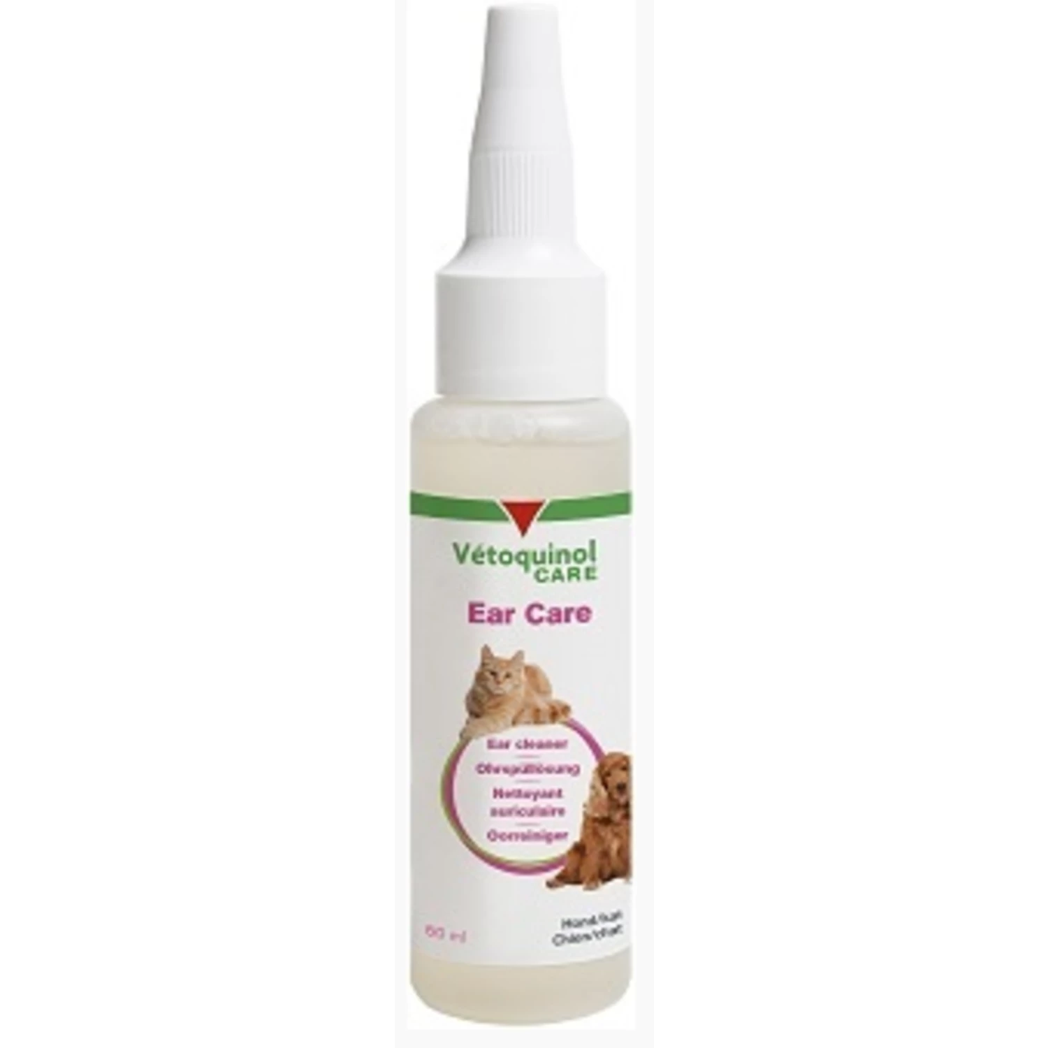 Vétoquinol Ear Care is een milde oorreiniger voor honden en katten. De oorreiniger lost vuil en oorsmeer op. Daarnaast heeft de oorreiniger een verzorgende werking voor het oor.